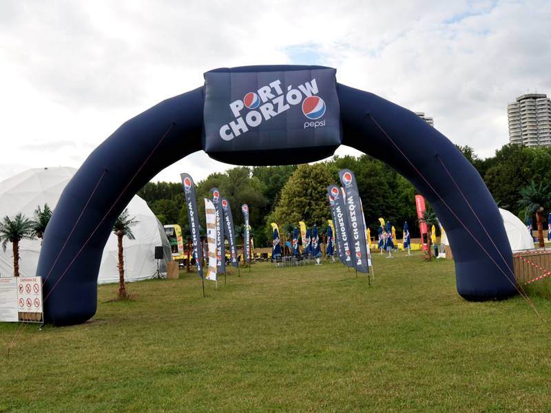 Brama Łuk o zmiennej liczbie brytów. Każdy z paneli z nadrukiem stałym lub wymiennym